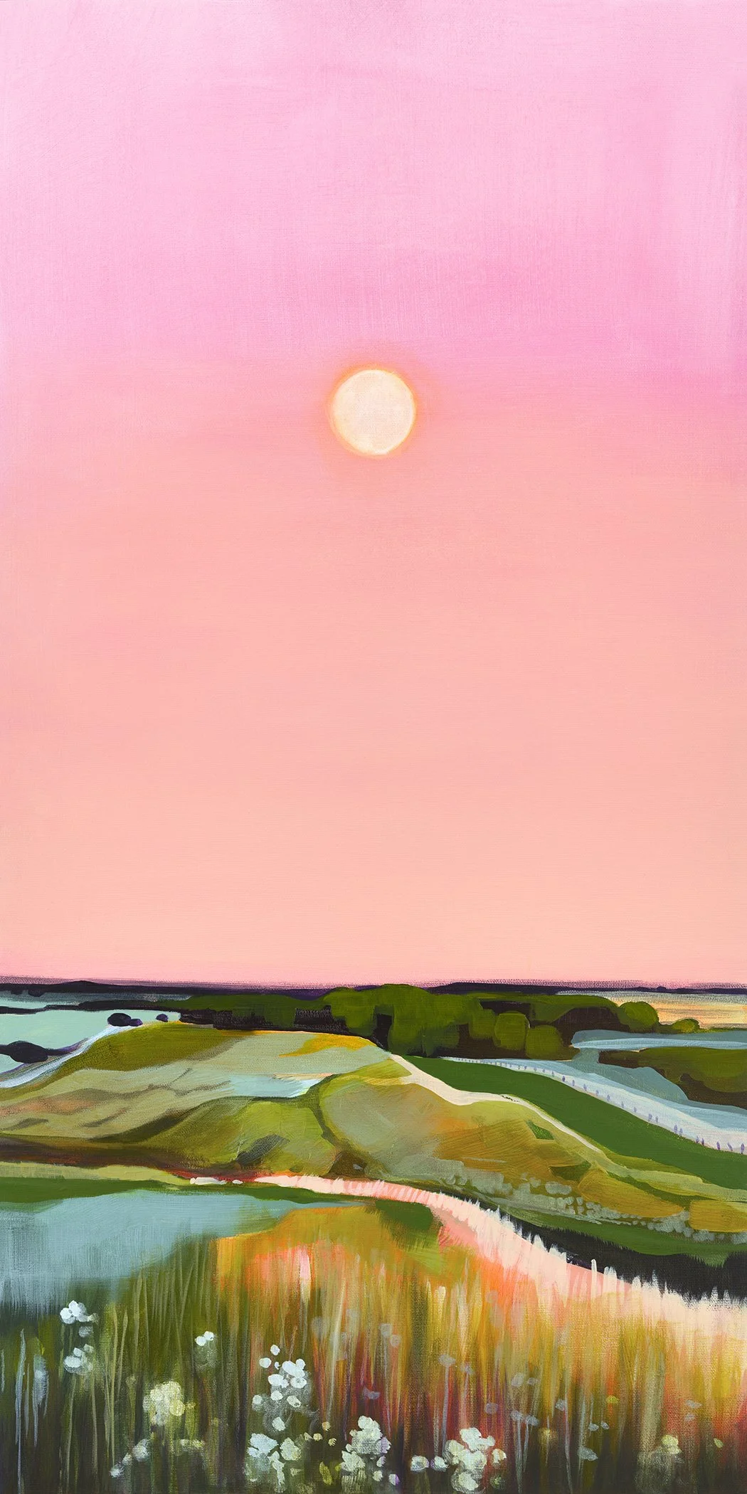 SOLD “Florals, circular #6” oil on birch, 20” diameter, 2021